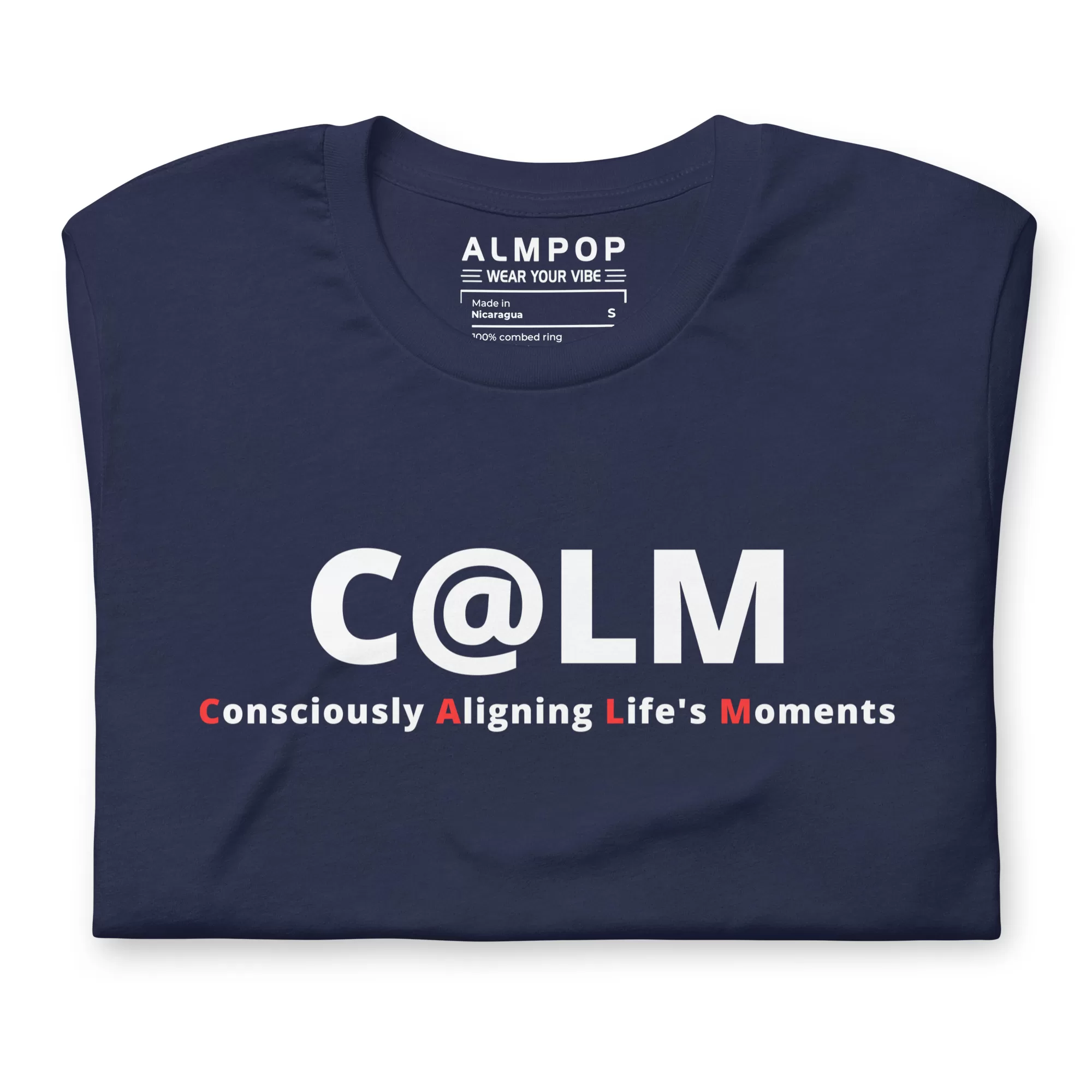 Discover your new favorite tee with the C@LM design, a perfect blend of comfort and purpose. Made from 100% premium cotton, this shirt is soft, lightweight, and designed with pre-shrunk fabric for a perfect fit every time. Featuring side-seamed construction, it ensures durability and a flattering shape. With its inspiring message, “Consciously Aligning Life’s Moments,” this t-shirt invites you to embrace mindfulness and simplicity in your daily life.