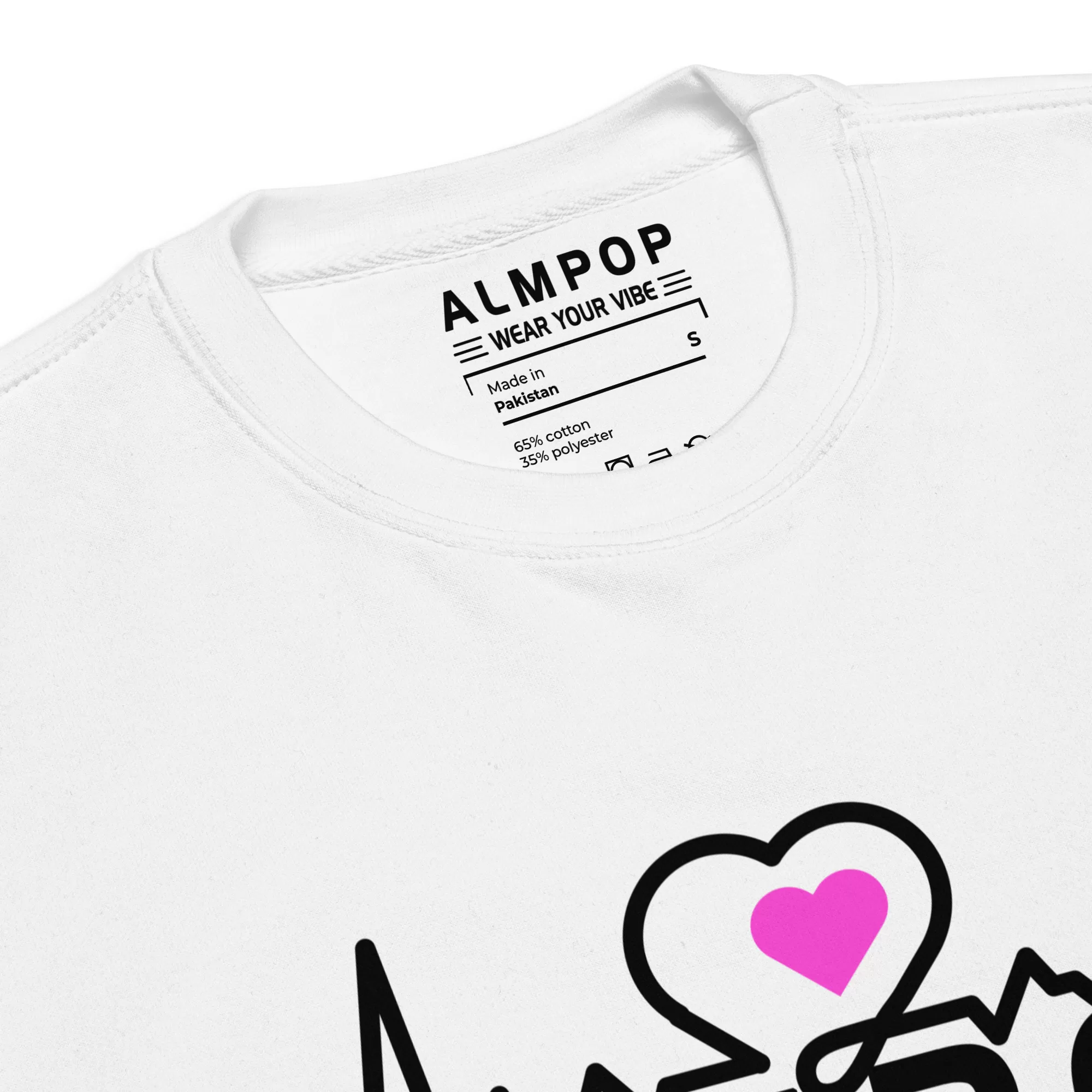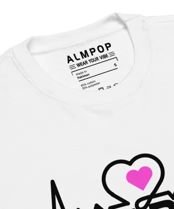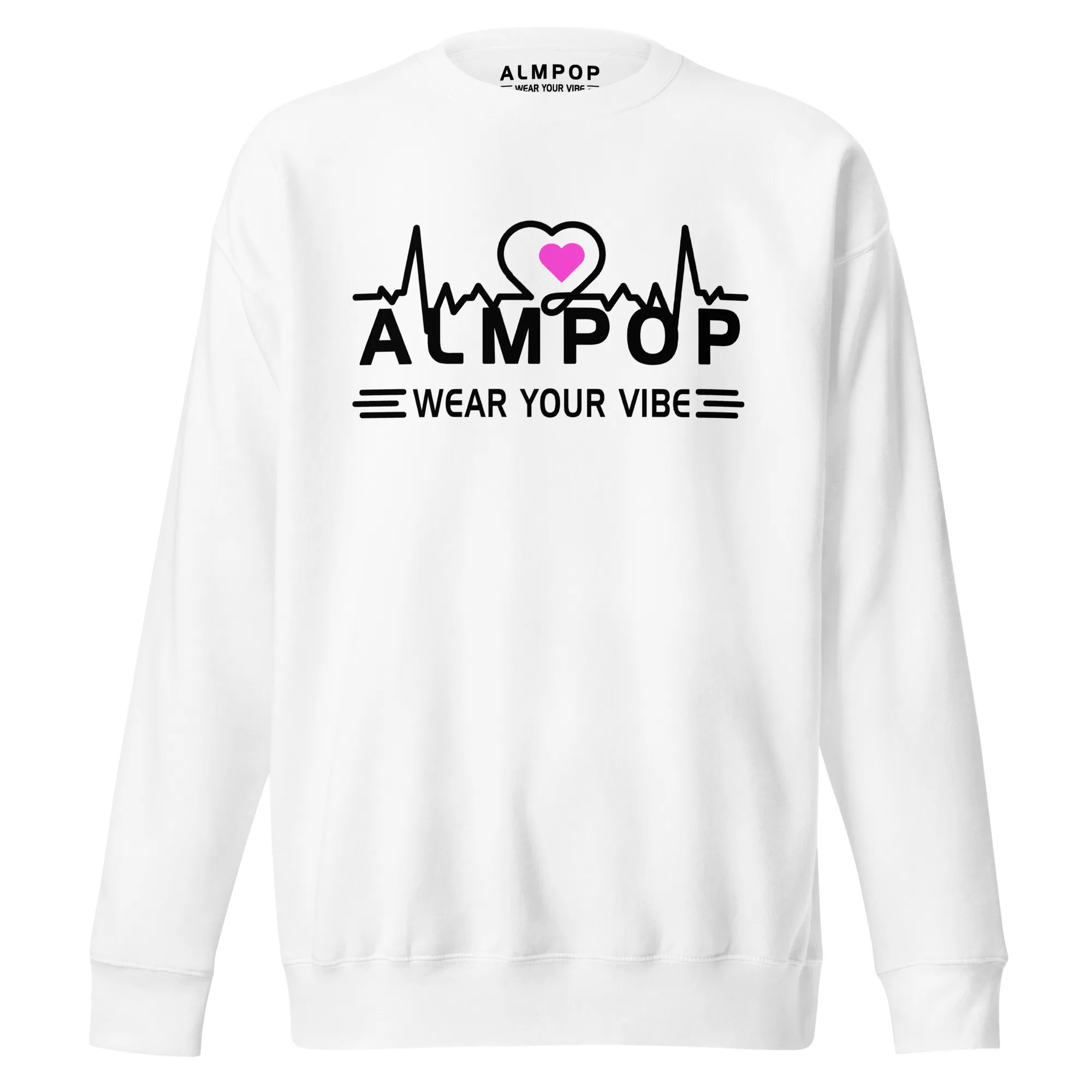 Embrace your inner rhythm with the ALMPOP sweatshirt. This cozy crewneck features a unique heartbeat design with a vibrant pink heart, symbolizing your personal pulse and energy. Pair it with your favorite jeans or joggers for a comfortable yet stylish look.