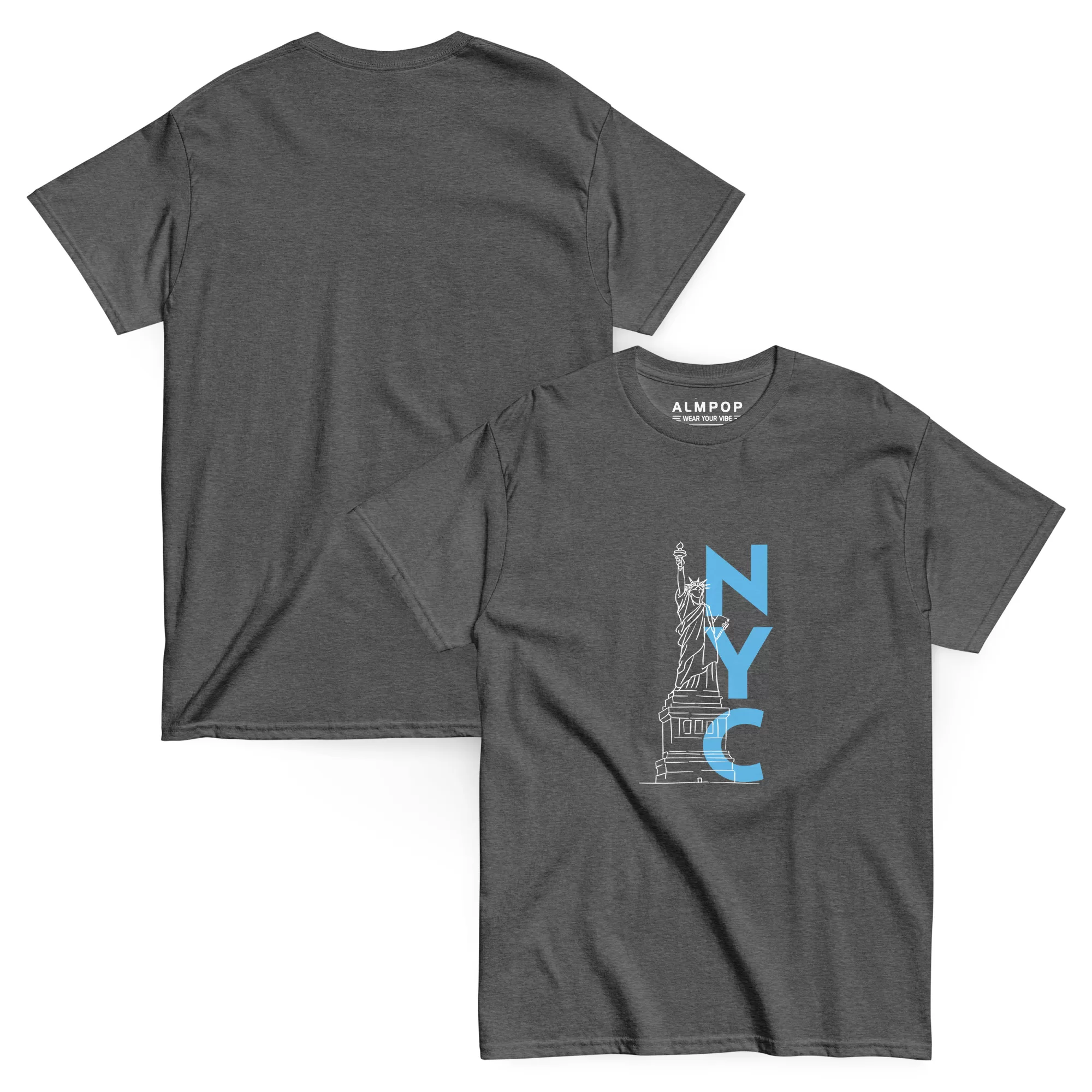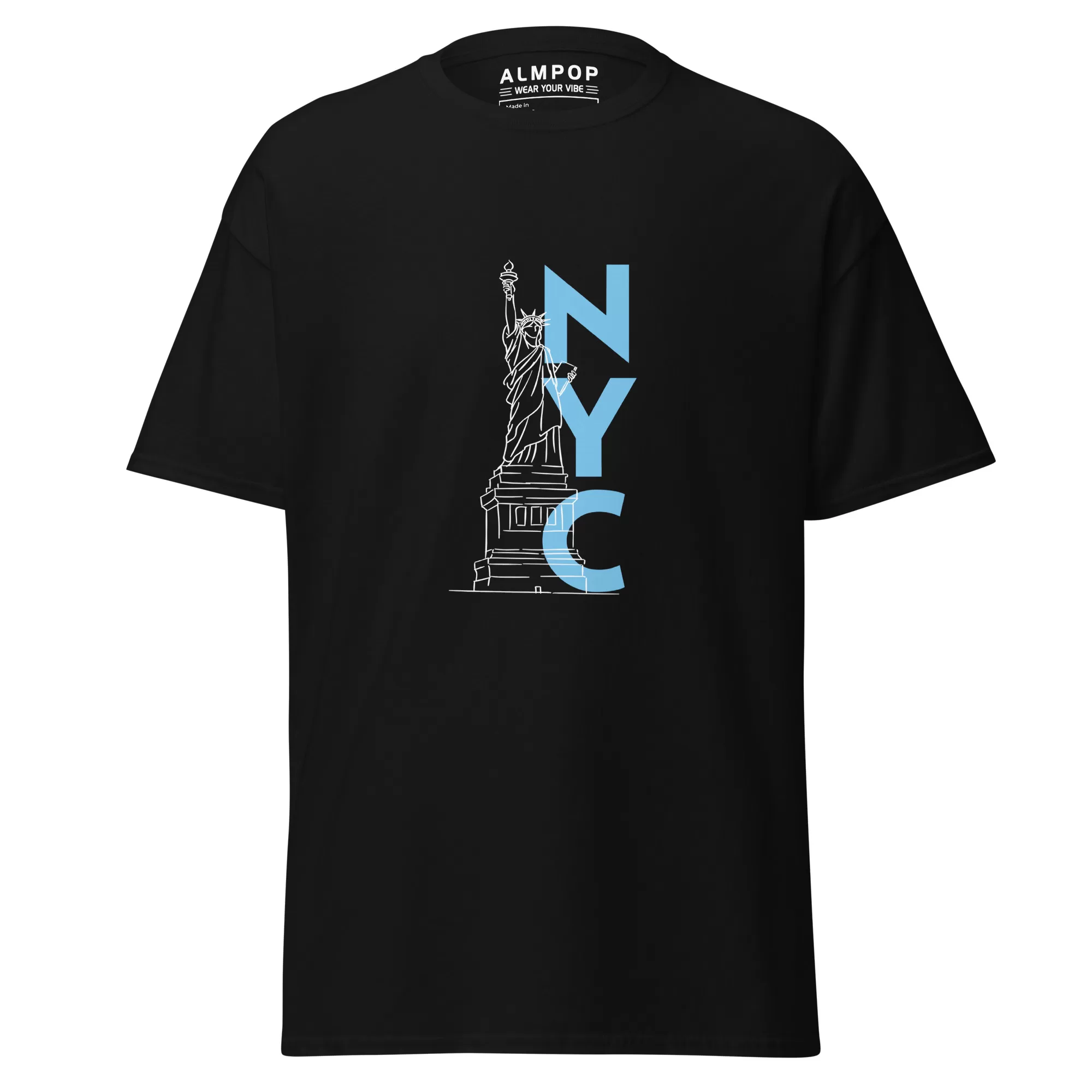 Show your love for the Big Apple with the ALMPOP NYC Classic Tee. This structured and stylish 100% cotton tee features a unique graphic showcasing the iconic Statue of Liberty alongside a bold “NYC” lettering. Perfect for layering with your favorite streetwear, this tee offers a trendy and crisp look. With taped neck and shoulders and double-stitched seams, this ALMPOP tee is designed for comfort and durability. Wear your vibe and represent NYC in style.
